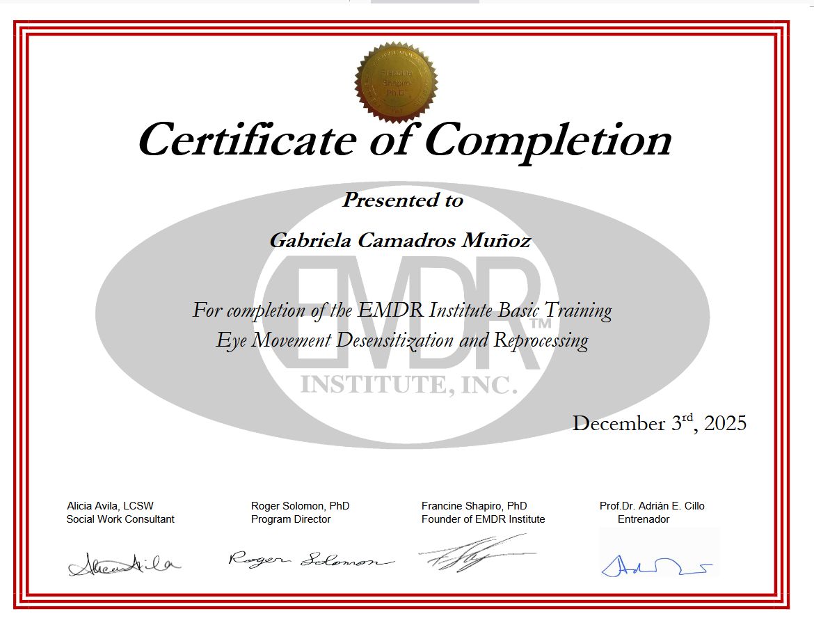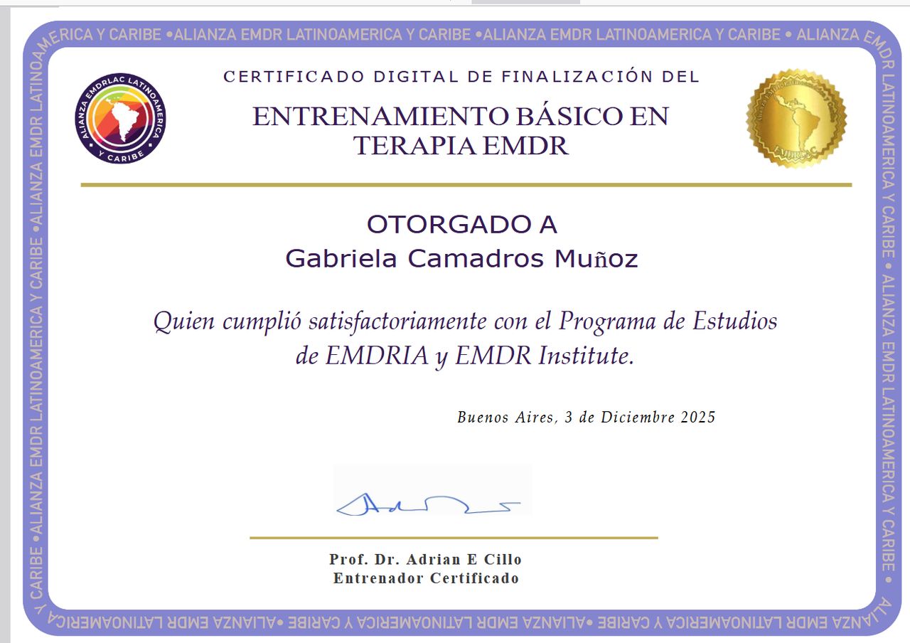Soy psicóloga con formación en enfoque cognitivo constructivista y especializada en terapia EMDR, trabajando principalmente con adolescentes a partir de los 14 años y adultos.